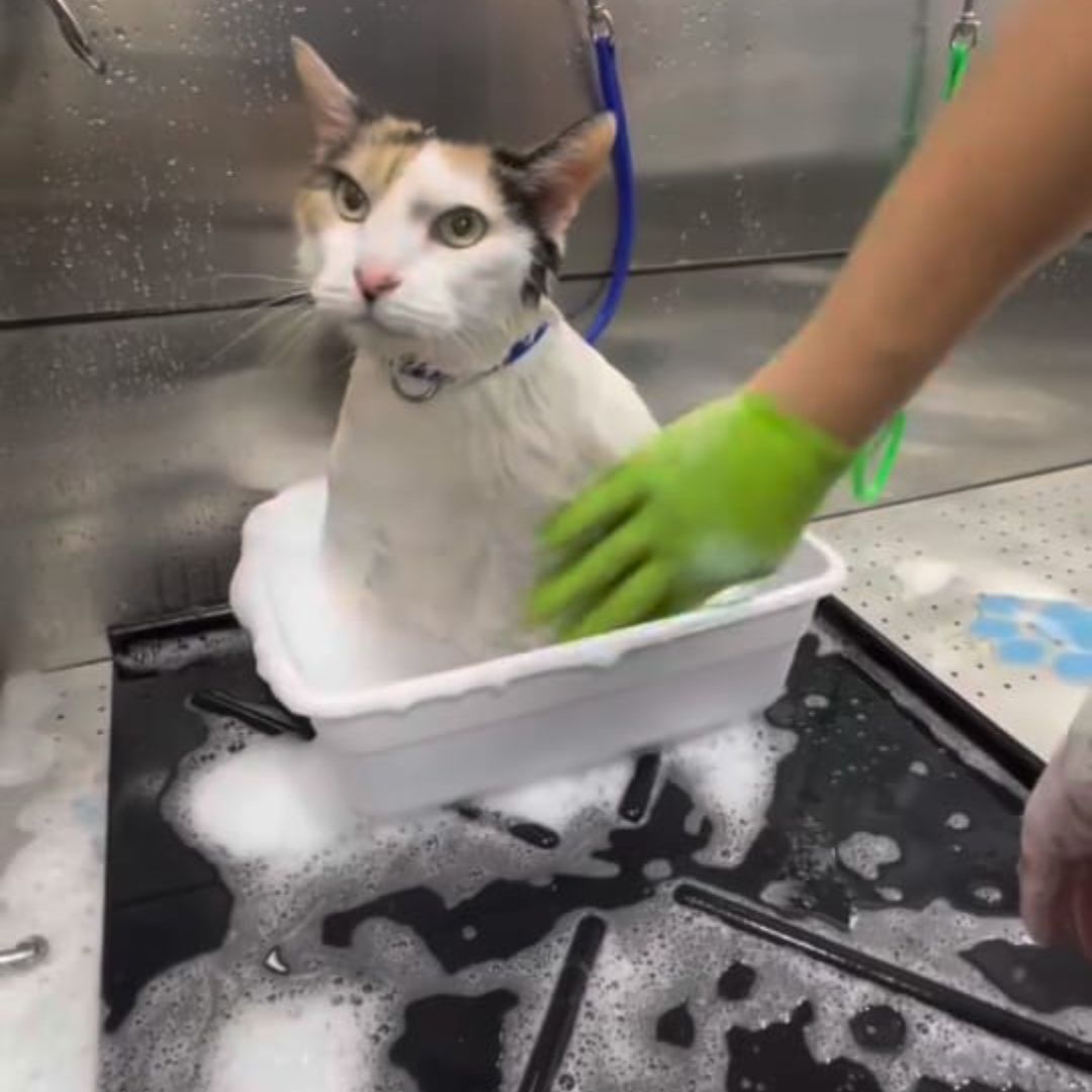 -Bath with warm water and shampoo tailored to your pet’s coat type.